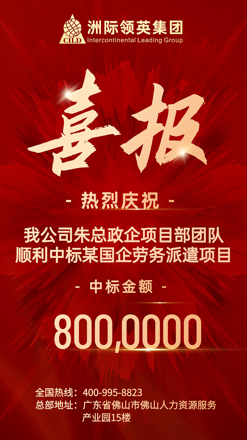 近期,洲際領英人力資源集團憑借雄厚的綜合實力、豐富投標經驗、卓越服務理念得到眾多甲方認可,成功中標某國企勞務派遣項目。