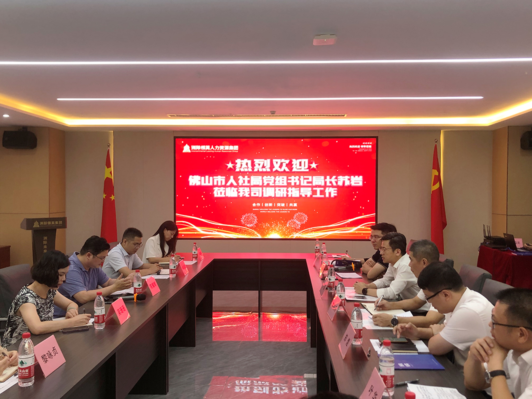 2023年8月10日下午在公司會議室,佛山市人力資源社會保障局黨組書記局長蘇巖率領(lǐng)市區(qū)鎮(zhèn)街人社部門領(lǐng)導蒞臨我司出席調(diào)研指導工作會。