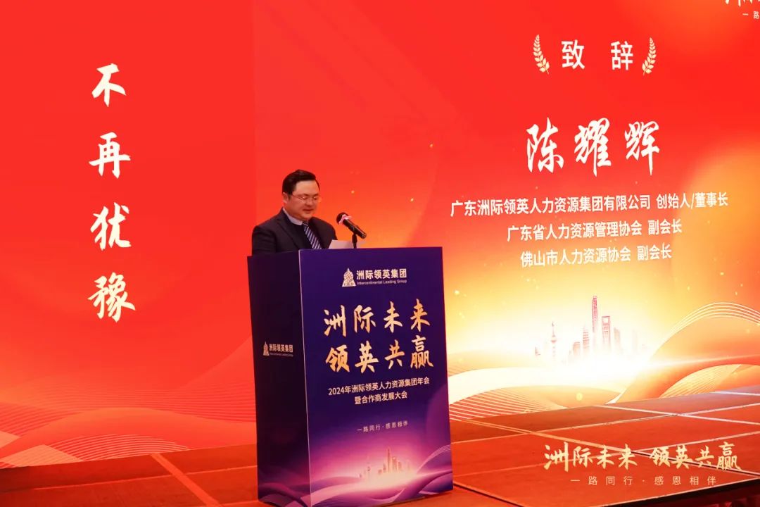 廣東洲際領英人力資源集團創(chuàng)始人陳耀輝先生致辭:過去一年集團組織變革、系統(tǒng)重裝,重塑從客戶為中心經營理念,全員圍繞打糧食部署工作,系統(tǒng)開展了分責、分工及任務分解。