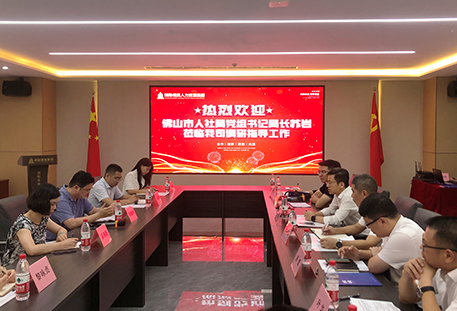 2023年8月10日下午在公司會議室,佛山市人力資源社會保障局黨組書記局長蘇巖率領(lǐng)市區(qū)鎮(zhèn)街人社部門領(lǐng)導(dǎo)蒞臨我司出席調(diào)研指導(dǎo)工作會